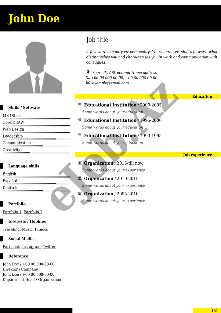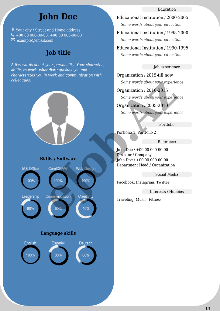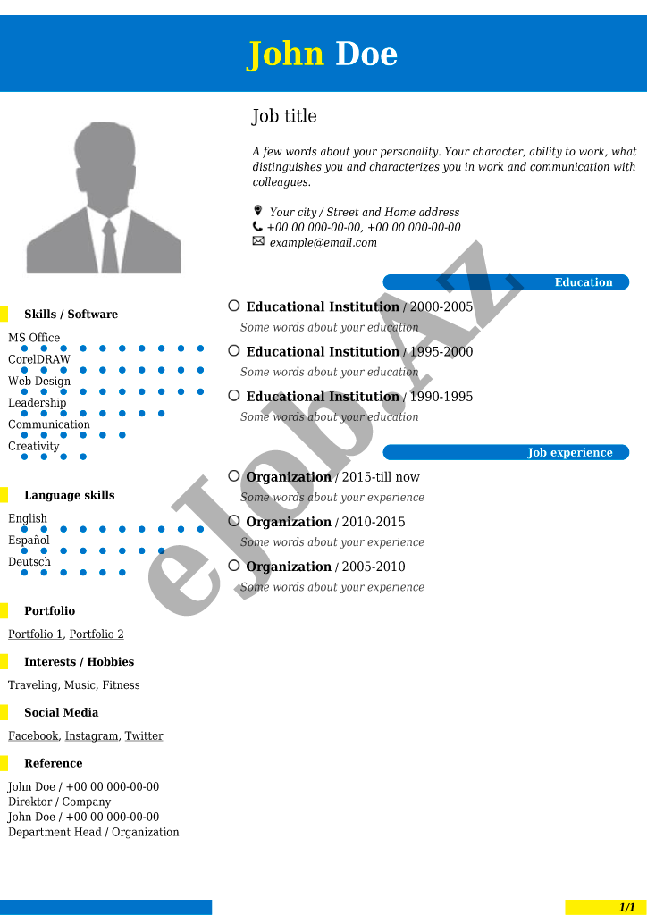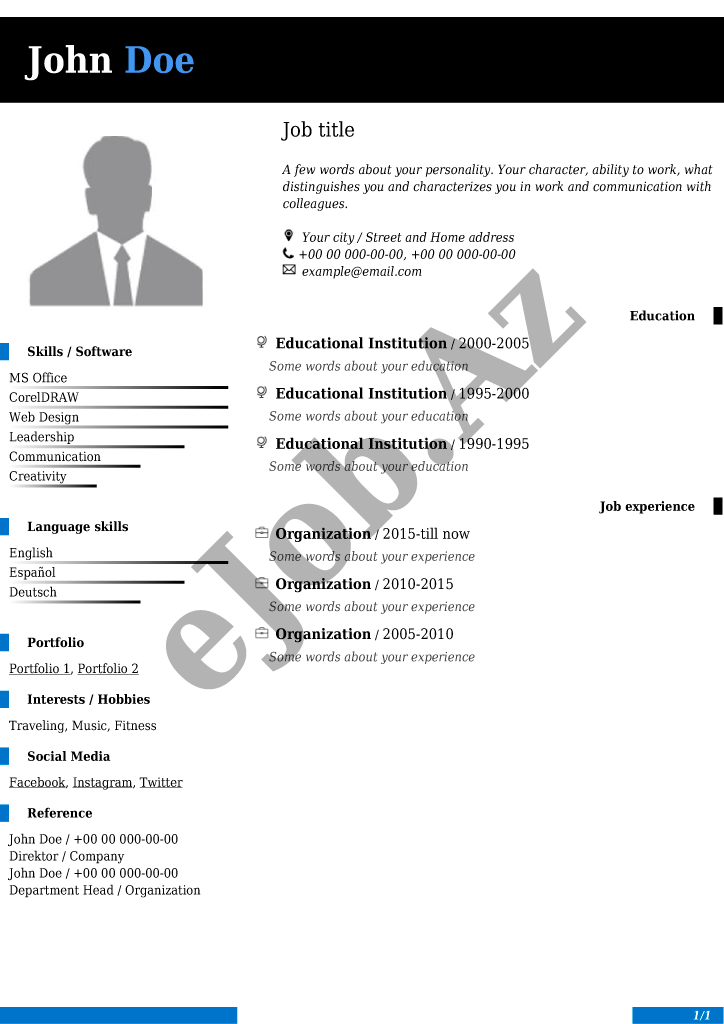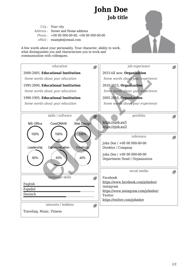 İstədiyiniz CV forması seçərək pusluz PDF rezume yarada bilərsiz, bu səhifədə onlayn CV hazırlamaq üçün nəzərdə tutulmuş bütün CV nümunələri göstəlirir.Əldə etdiyiniz PDF CV faylın nümunədə göstərildiyi kimi görünməsini təmin etmək üçün CV forması tam şəkildə və düzgün doldurulmasına diqqət yetirin.