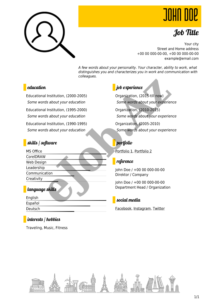 CV forması 〉CV yarat PDF CV nümunəsi Yükləmək üçün şablonu seçin: Bütün CV formaları CV hazırlamaq üçün ən çox istifadə olunan nümunələr: CV nümunə 060 CV nümunə 049 CV nümunə 057 CV nümunə 056 CV nümunə 055 CV nümunə 031 CV nümunə 050 CV nümunə 054 CV nümunə 040 CV nümunə 001 |